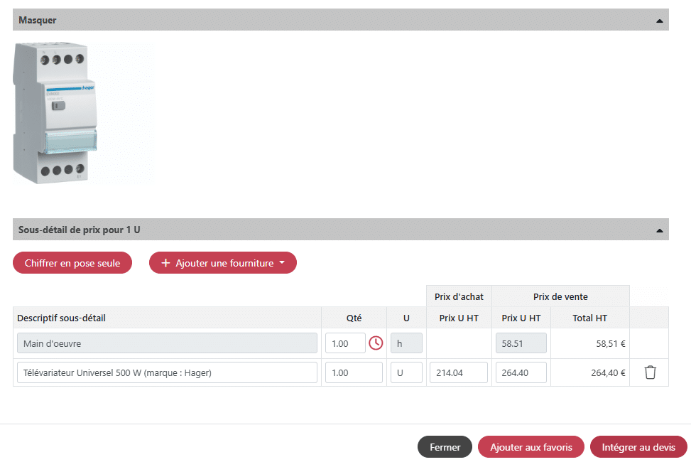 Un module web sur leur site internet Hager pour importer leurs ouvrages types dans le logiciel des artisans