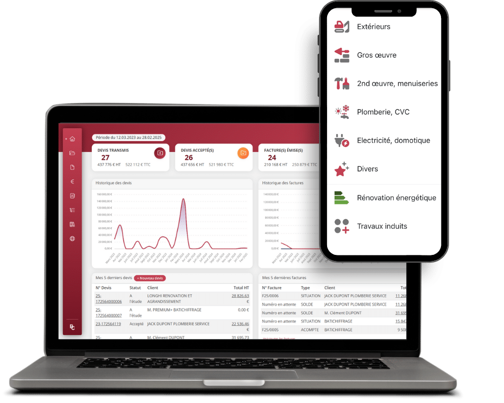 devis, factures et estimatifs travaux adopté par des milliers de pros du bâtiment.