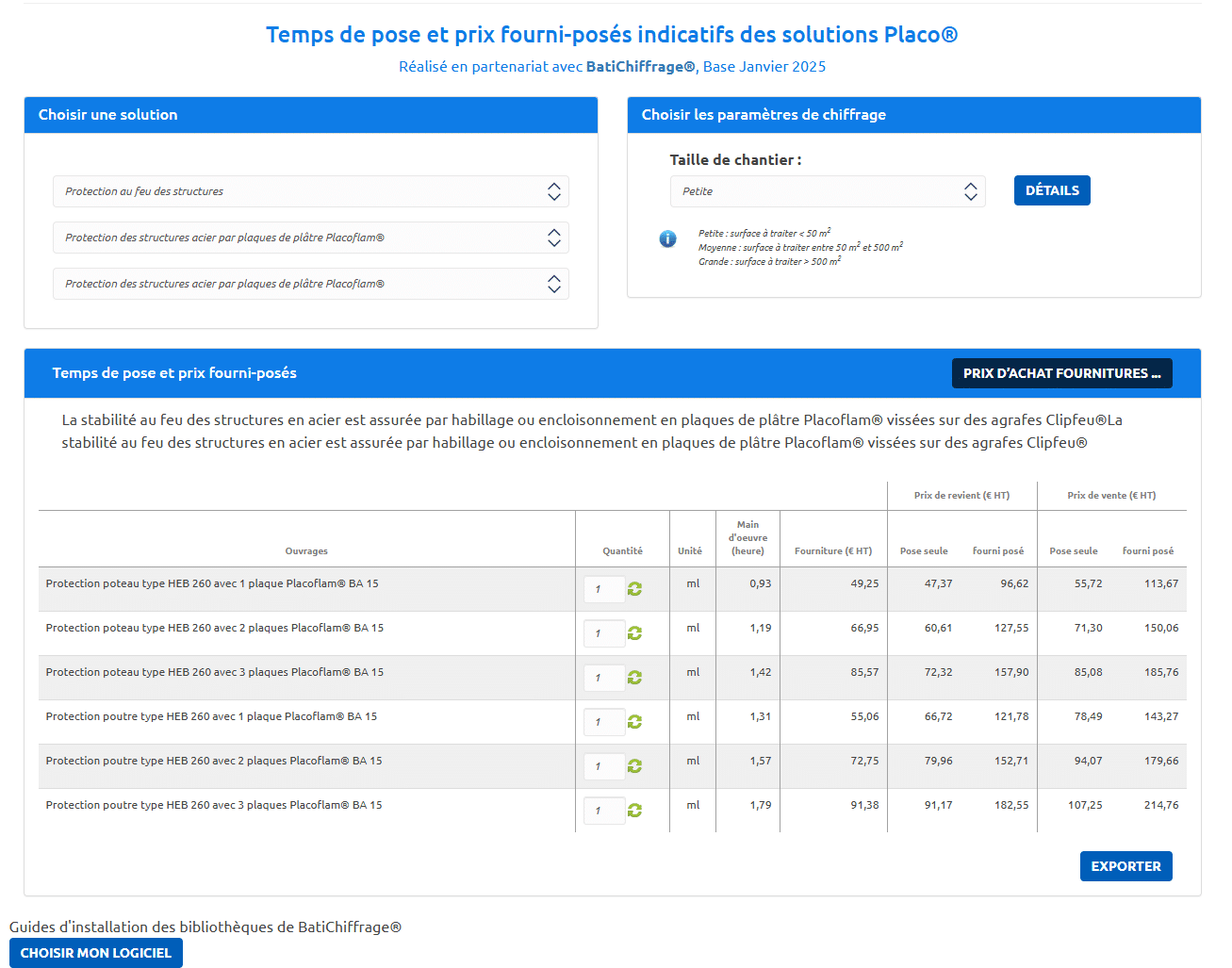 - Estimation rapide et fiable des projets en prix fourni-posés pour les solutions Placo et Isover